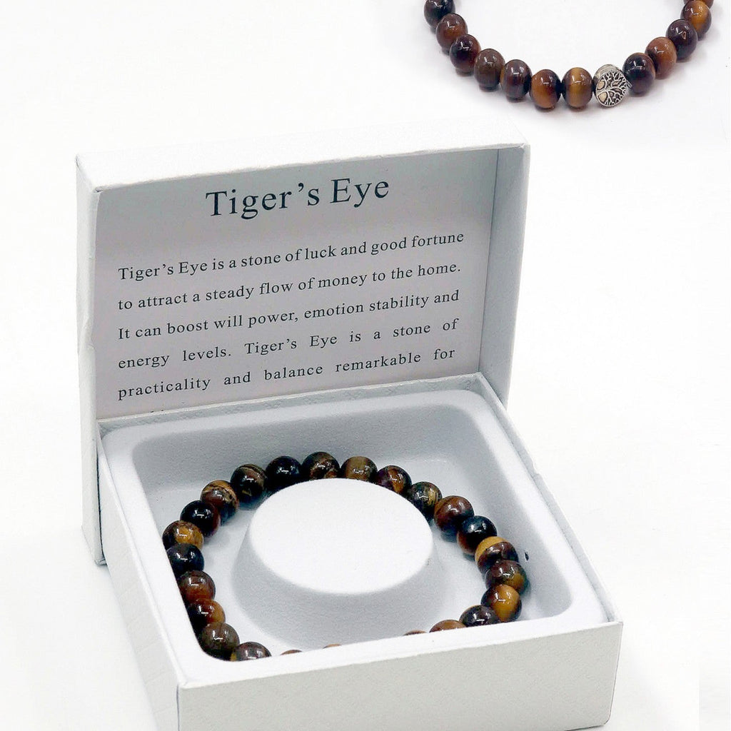 Features: Stretchy, tiger eye stone, Diameter: 2.7", comes in white gift box